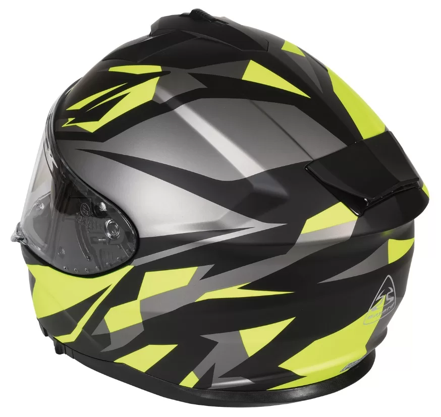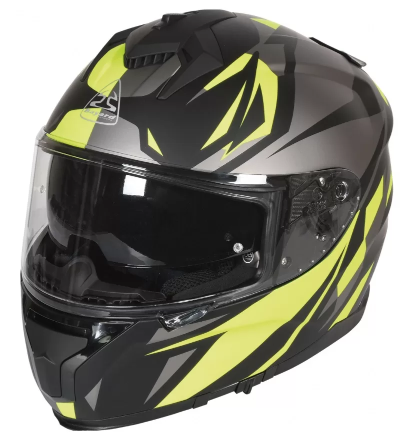 Bayard motoristična čelada SP-64 S Jupiter je športna integralna čelada in je standardno opremljena s Heroes vizirjem proti praskam in pripravljenim vizirjem Pinlock. Pinlock pripravljen pomeni, da ima vizir 2 luknji, v kateri lahko pritrdite ločen vizir z vstavkom Pinlock, da preprečite, da bi se vaš vizir rosil. Na voljo je v črno/sivi in črno/rumeni barvi.
