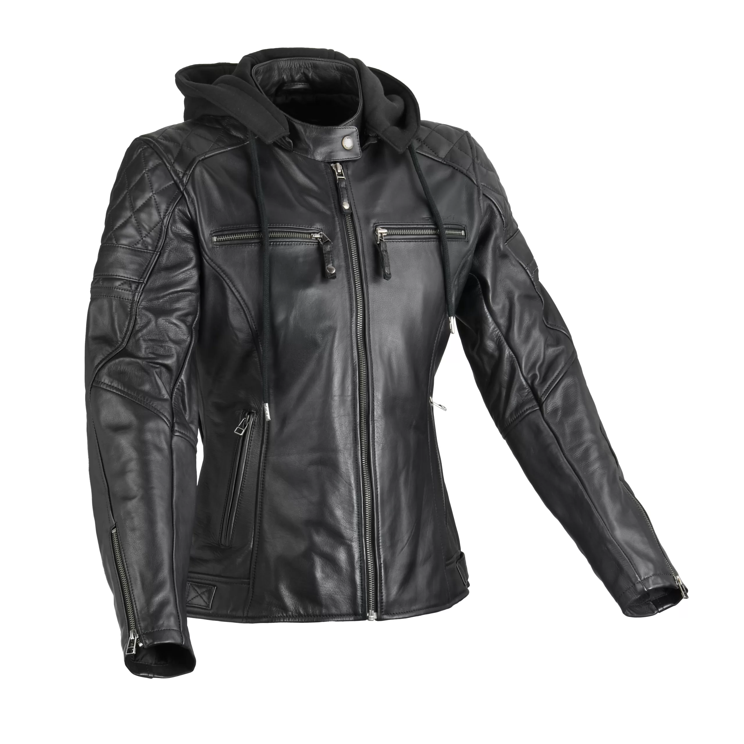 Usnjena jakna Jolene 2 proizvajalca DIFI je idealna izbira za motoristke, ki ne želijo sklepati kompromisov glede udobja in varnosti. Ne navduši samo s svojim slogom, ampak tudi s svojo funkcionalnostjo za vsako vožnjo. Lahka toplotna podloga v trupu vas greje, snemljiva kapuca pa po potrebi nudi dodatno zaščito. Prezračevalne zadrge na hrbtni strani poskrbijo za prijetno kroženje zraka. Širina roba se lahko prilagodi s pomočjo stranskih jezičkov, da se zagotovi optimalno prileganje. S štirimi sprednjimi žepi z zadrgo, vključno z žepi na prsih z dodatnim zračenjem, in notranjimi žepi, imate veliko prostora za shranjevanje vaših osnovnih stvari. Kratka povezovalna zadrga omogoča enostavno kombiniranje z motorističnimi hlačami. Za vašo varnost so na komolcih in ramenih integrirani ščitniki, ščitnike za komolce pa je mogoče nastaviti po višini. Jolene 2 je pripravljena tudi za zaščito hrbta SAS-TEC (ni vključena) za dodatno zaščito.