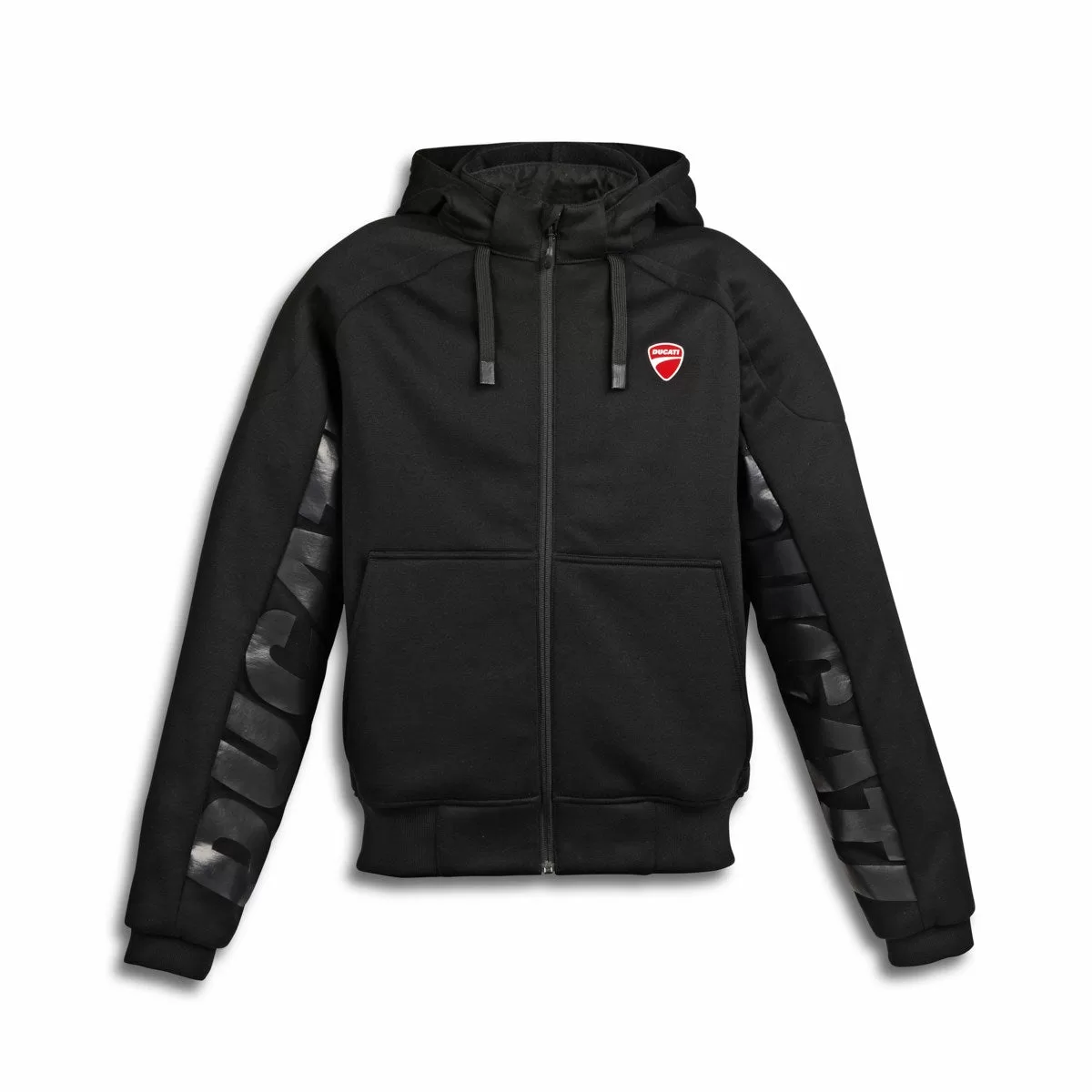 Motoristična jakna Ducati Jargon, ki je na voljo samo v moškem kroju, izstopa zaradi svojega urbanega, minimalističnega videza, ki ga zaznamujejo umirjene barve, poudarjene z rdečimi detajli Ducati, in diskretnim maksi logotipom na notranji strani rokava. Motoristični jopič z odstranljivo kapuco, ki je opremljen z notranjimi ojačitvami iz aramidnih vlaken proti odrgnjenju, zaščito na ramenih in komolce ter žep za vstavljanje hrbtne zaščite Nucleon (po naročilu ločeno). Zaradi kenguru žepa s sprednjo zadrgo in snemljive kapuce z nastavljivo prostornino z vrvico je to oblačilo še posebej praktično in funkcionalno. Idealna rešitev za motoriste, ki iščejo oblačilo za prosti čas, ki nudi dobro zaščito za mestno vožnjo.