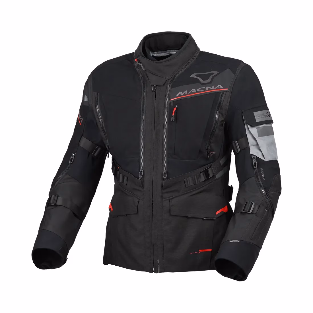 Glavni material jakne je mehka, a trpežna tkanina, ki nudi visoko stopnjo odpornosti proti obrabi. Macna Flexodus WP se ponaša z izjemno elastičnostjo, kar pomeni, da se jakna premika skupaj z vami. Nič več zategovanja v ramenih ali omejenega gibanja rok – ta jakna nudi svobodo, ki jo boste opazili takoj, ko boste sedli na motor.