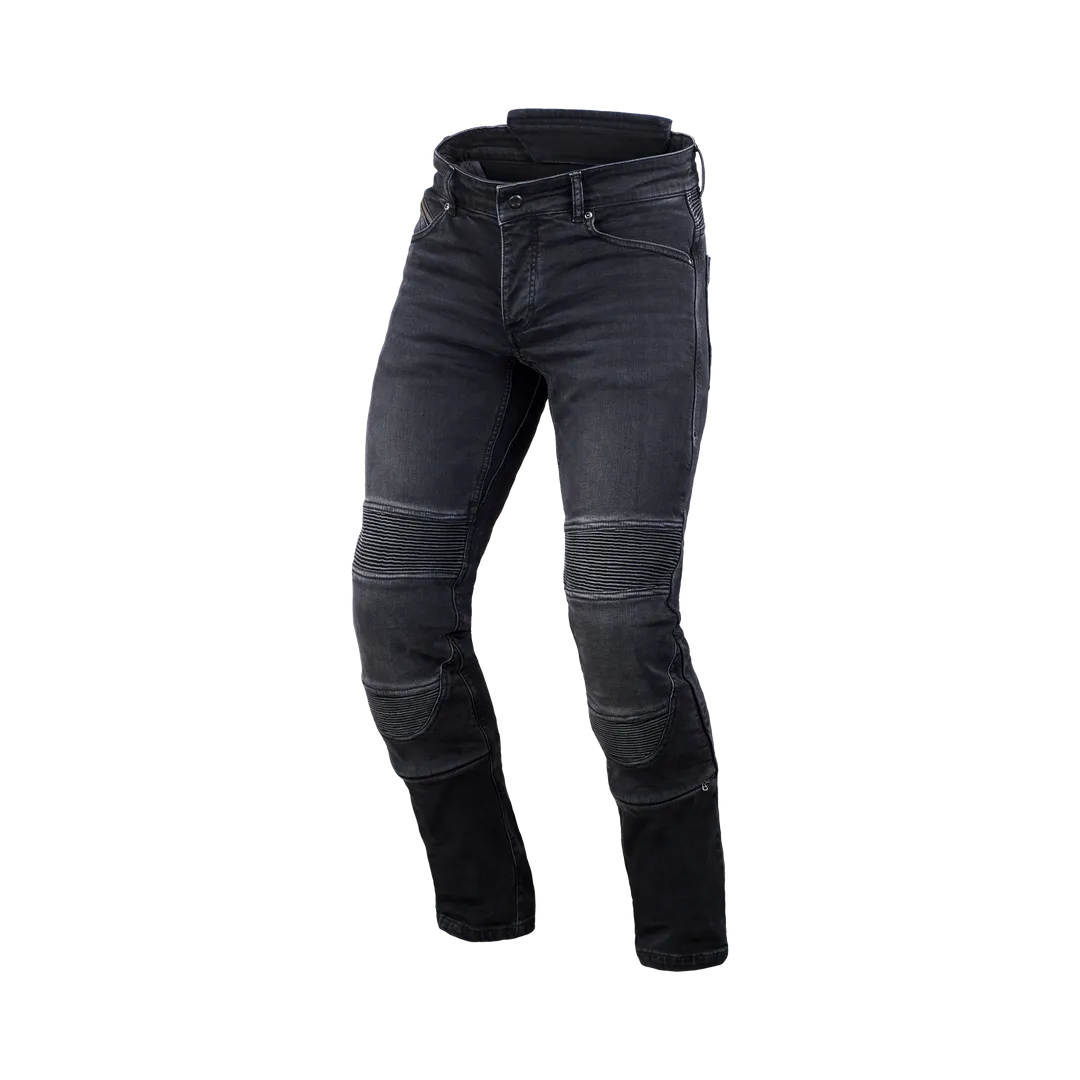 Lahke stretch motoristične kavbojke Individi imajo ojačitve iz aramida na bokih, kolenih in hrbtu. Hlače imajo pripravljen žep za ščitnik na boku, kratko povezovalno zadrgo, zanke za pas in zadrgo za hitri dostop do ščitnikov za kolena. Na voljo v več odtenkih modre in sive barve in konf. številkah 26 do 34.